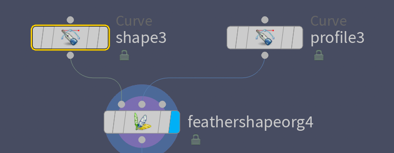 Drawing a feather in Houdini is very easy and quite artist-friendly. The easiest way to generate one is using the Feather Shape Organize SOP node. The first input of the node takes in a Shape Curve which is essentially the line of the shaft + the outline of the feather. I recommend starting at the bottom of the shaft and drawing that curve first for the best results. In my setups I always used a Curve SOP node and hand drew the needed curves - but in theory you could use any SOP node that generates curves.