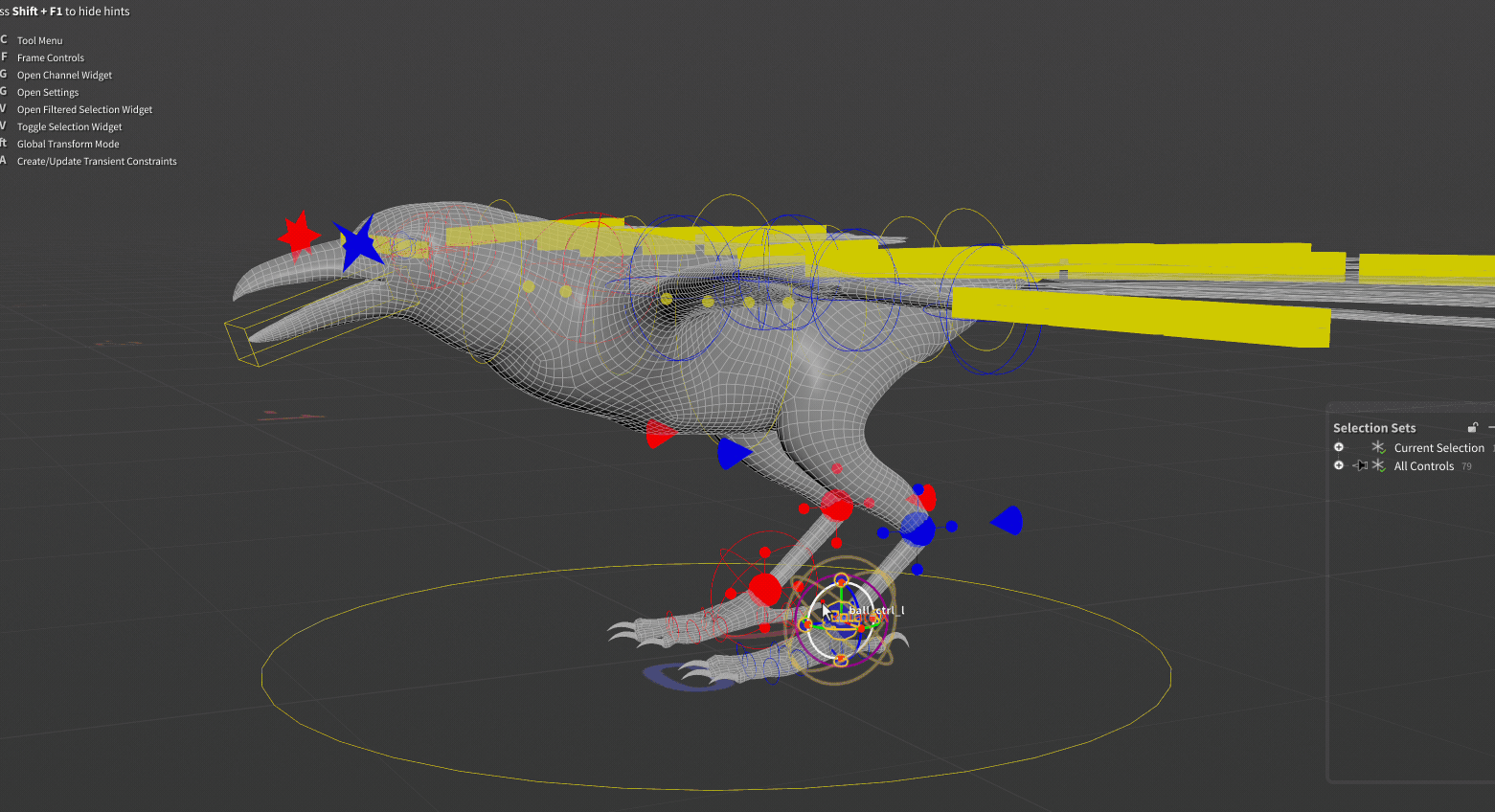 Houdini 20.5 introduces some great improvements to both the APEX rigging system and rigging characters with grooms in particular. In this section, I'll go over how I tackled animating and rigging my crow using a lot of these new additions, with a primary focus on the new APEX Add Groom node.