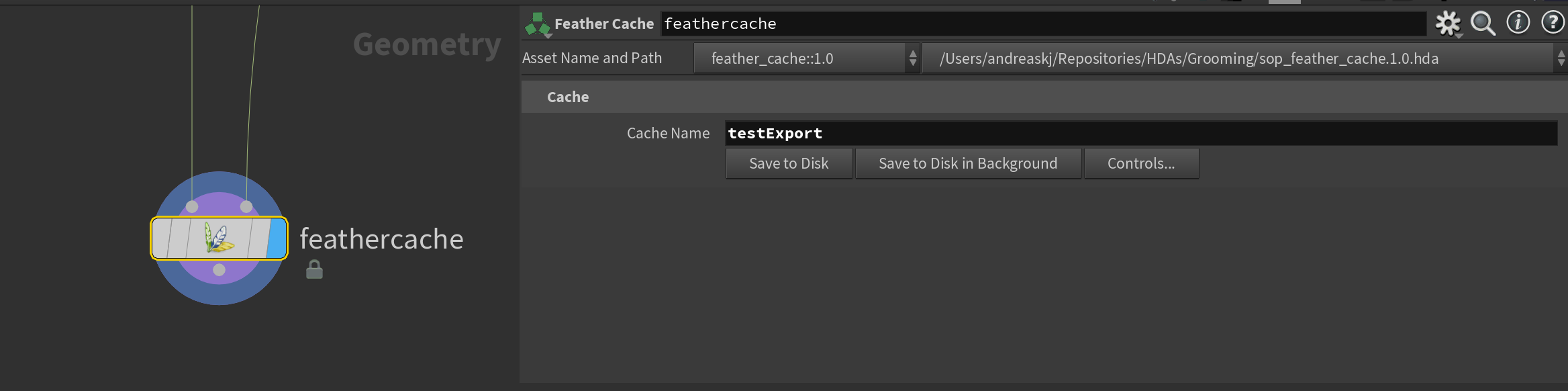 Now, I realize this is a lot of information to take in, especially if you're not comfortable with Solaris. Therefore I've created an HDA that you can just plug at the end of your groom in SOPs (with your groom and mesh/skin), assign a name using the Cache Name parameter and click Save to Disk . This will export a USD into $HIP/geo/grooms/ with the whole structure set up. Then all you need to do is load the USD using a Sublayer LOP in LOPs, add a Preview Houdini Procedural , and render.