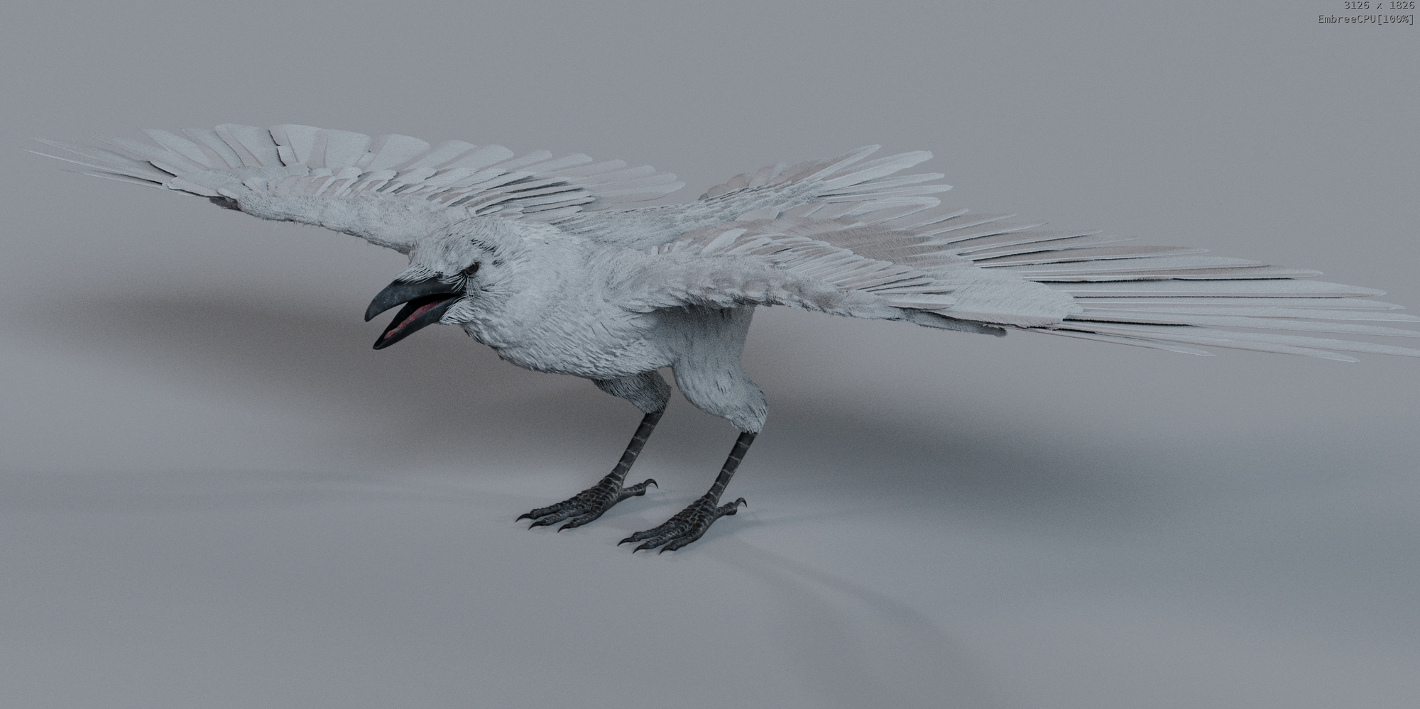 Cuticle Reflectance is another parameter for tweaking the specularity of the cuticle layer. This parameter serves as a way to model the shapes of the cuticle. In my case, I boosted this a bit for slightly tighter highlights in some areas and gave it a slightly blue tint using the Extra R Color to help give the feathers a bit of that thin-film blue/purple look you get on crow feathers from some angles. I think I want to revisit my approach to this in the future, but it worked pretty well as a starting point. This section also has its own Roughness parameters.