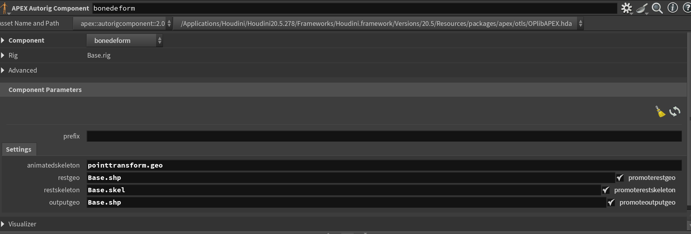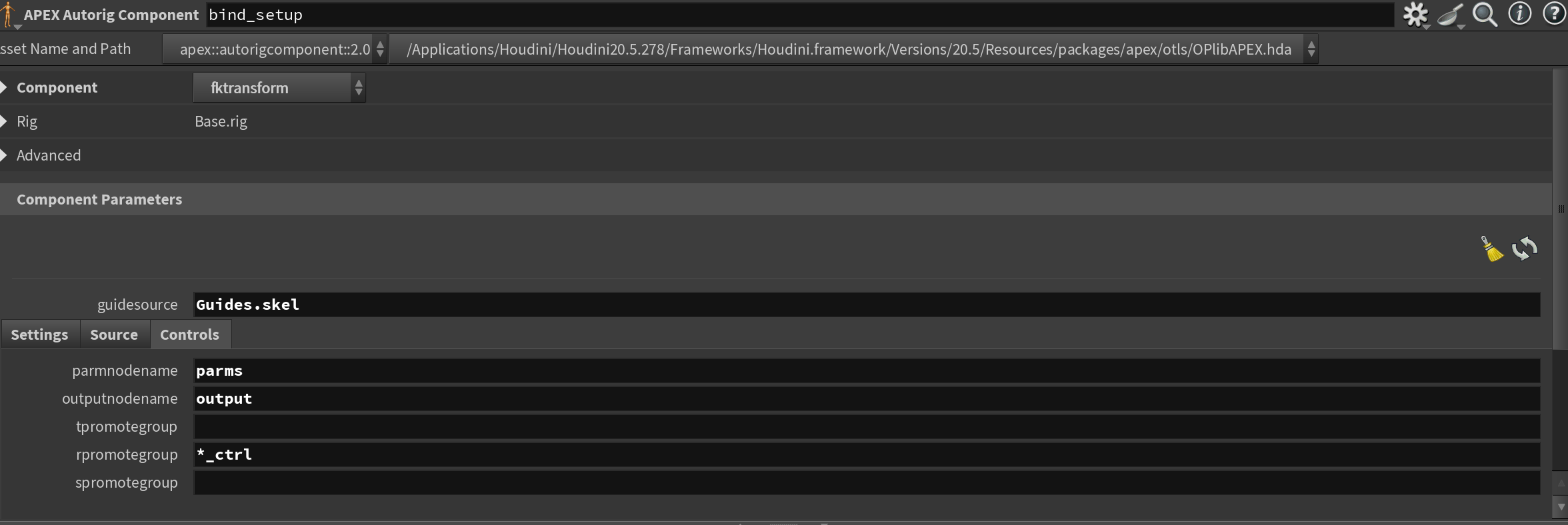 As always we start our APEX rig by setting up a bind skeleton (and FK if we choose to expose anything) using the fktransform Autorig Component. This is primarily responsible for initializing the bind skeleton and is a requirement for a lot of other APEX Autorig Components.