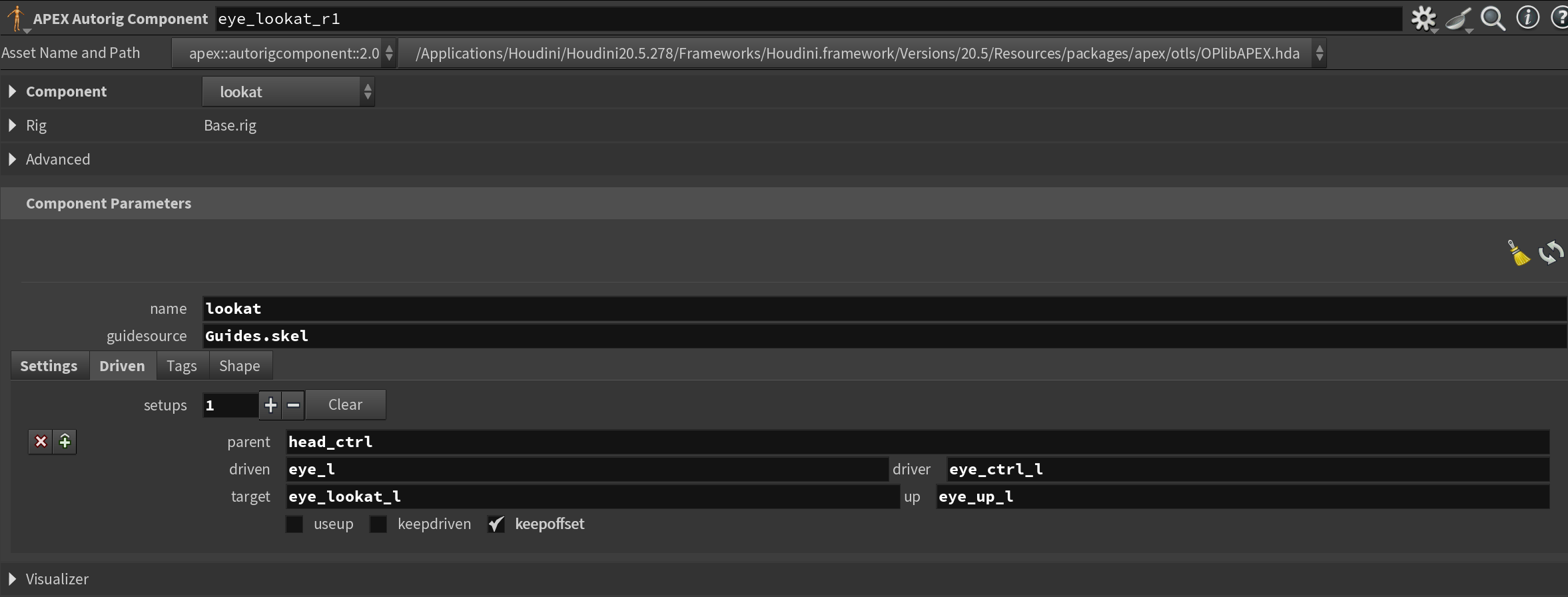 And now for one of the nice additions to Houdini 20.5 - the lookat Autorig Component. This component allows you to setup a lookat constraint - ideal for eyes.