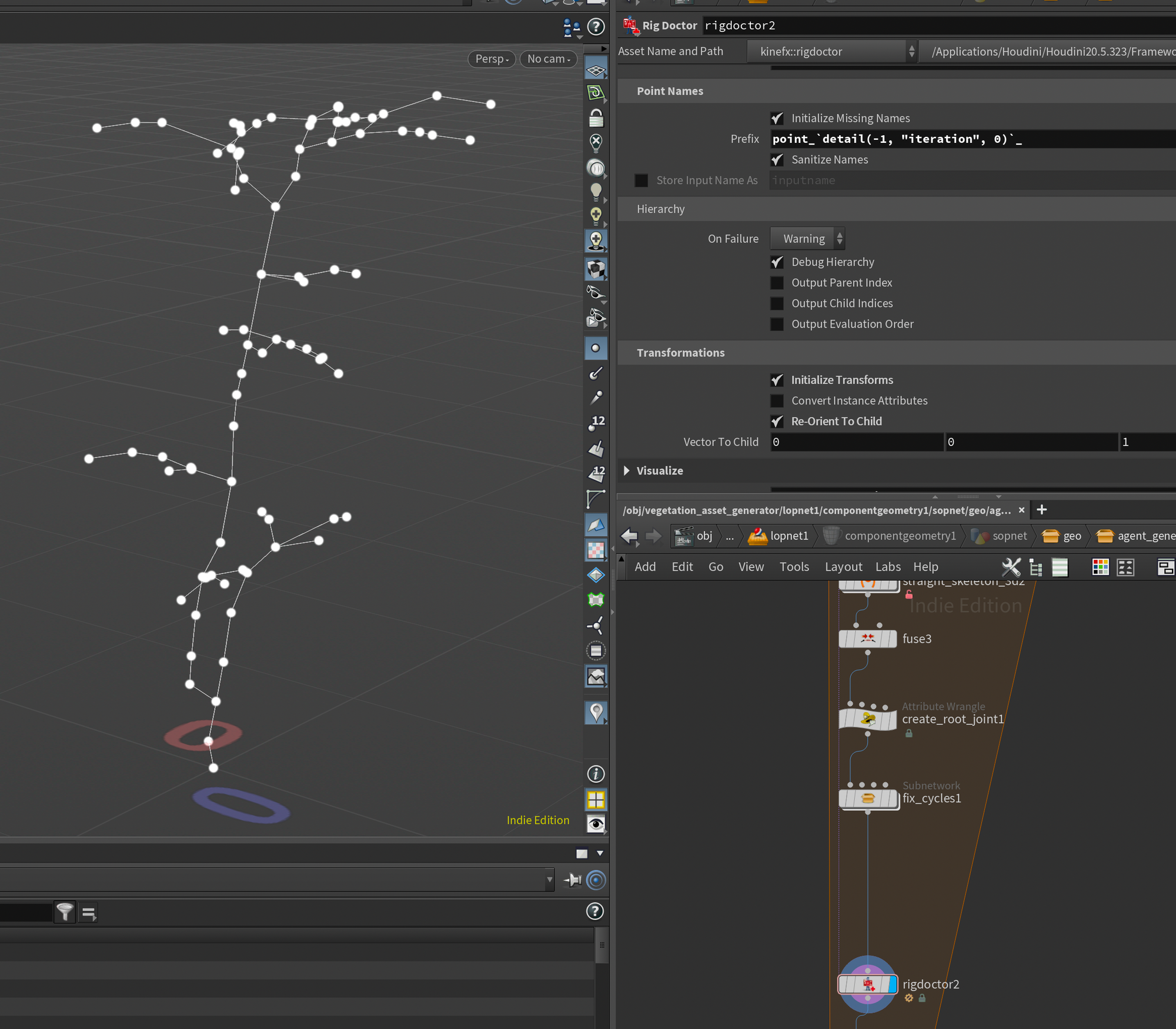 Add an Agent From Rig SOP and plug the output of the Rig Doctor directly into it. This will initialize our skeleton as an agent. Keep in mind that if the skeleton cleanup we did earlier failed, you would likely get an error now.