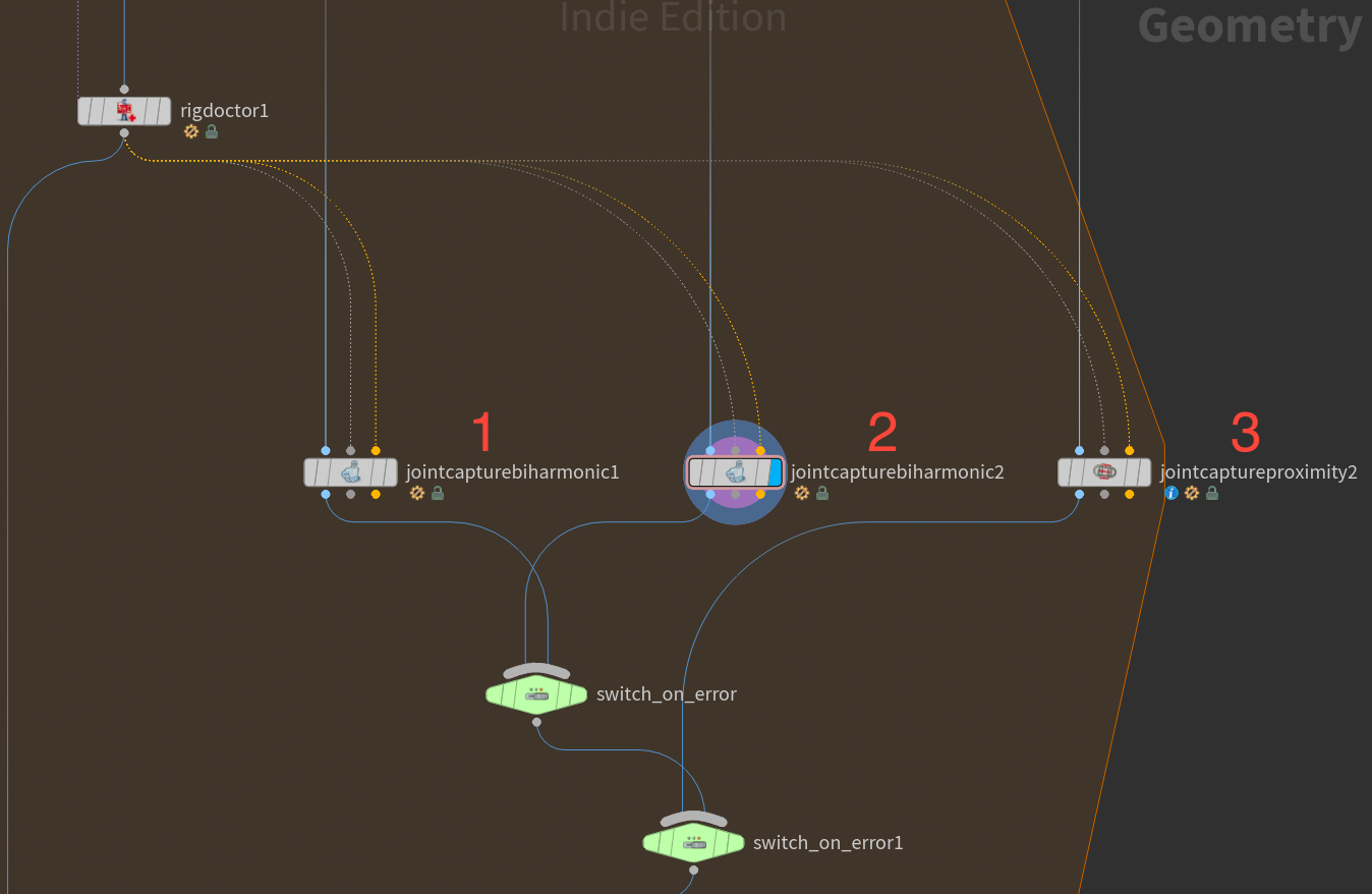 The way I check for errors is using a Switch node that checks if the second input has any geometry. If not, it will try the next one, and so forth. The code in the switch nodes is the following python script: