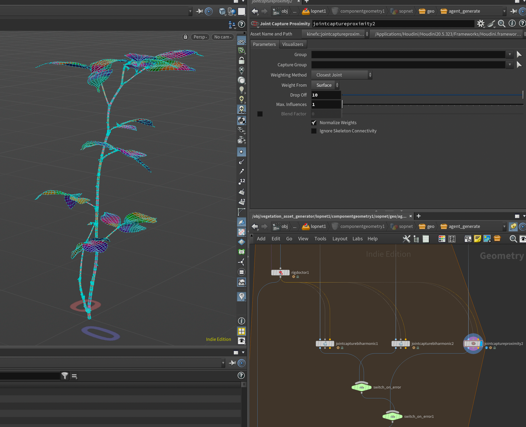 In order to turn our vegetation into agents, we need 2 components - a skeleton and a mesh with weights based on said skeleton.