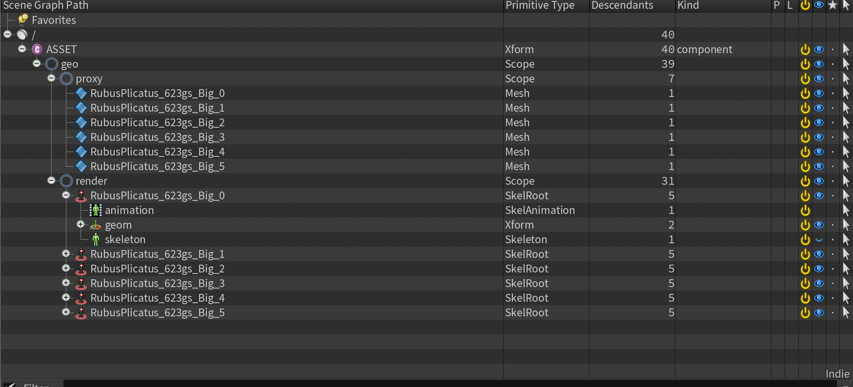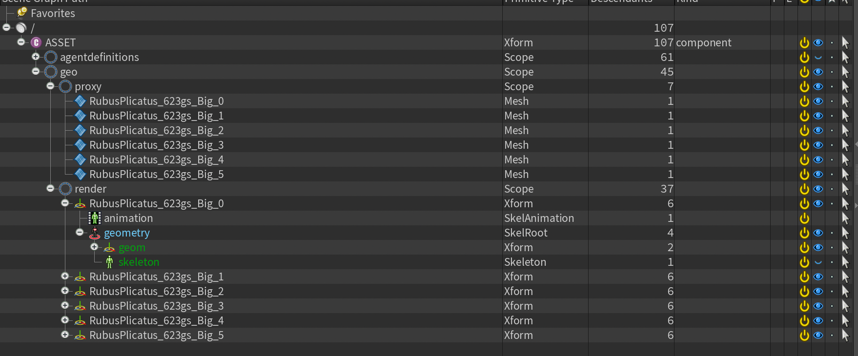 With that done our Component Geometry node should now output a proper USD stage complete with proxy geometry and agents.