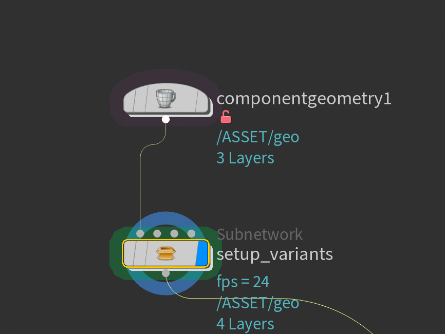 This way, the variant will work on both the proxy and render geometry. With that done, we now have working variants you can set by targeting the top primitive in the USD stage.