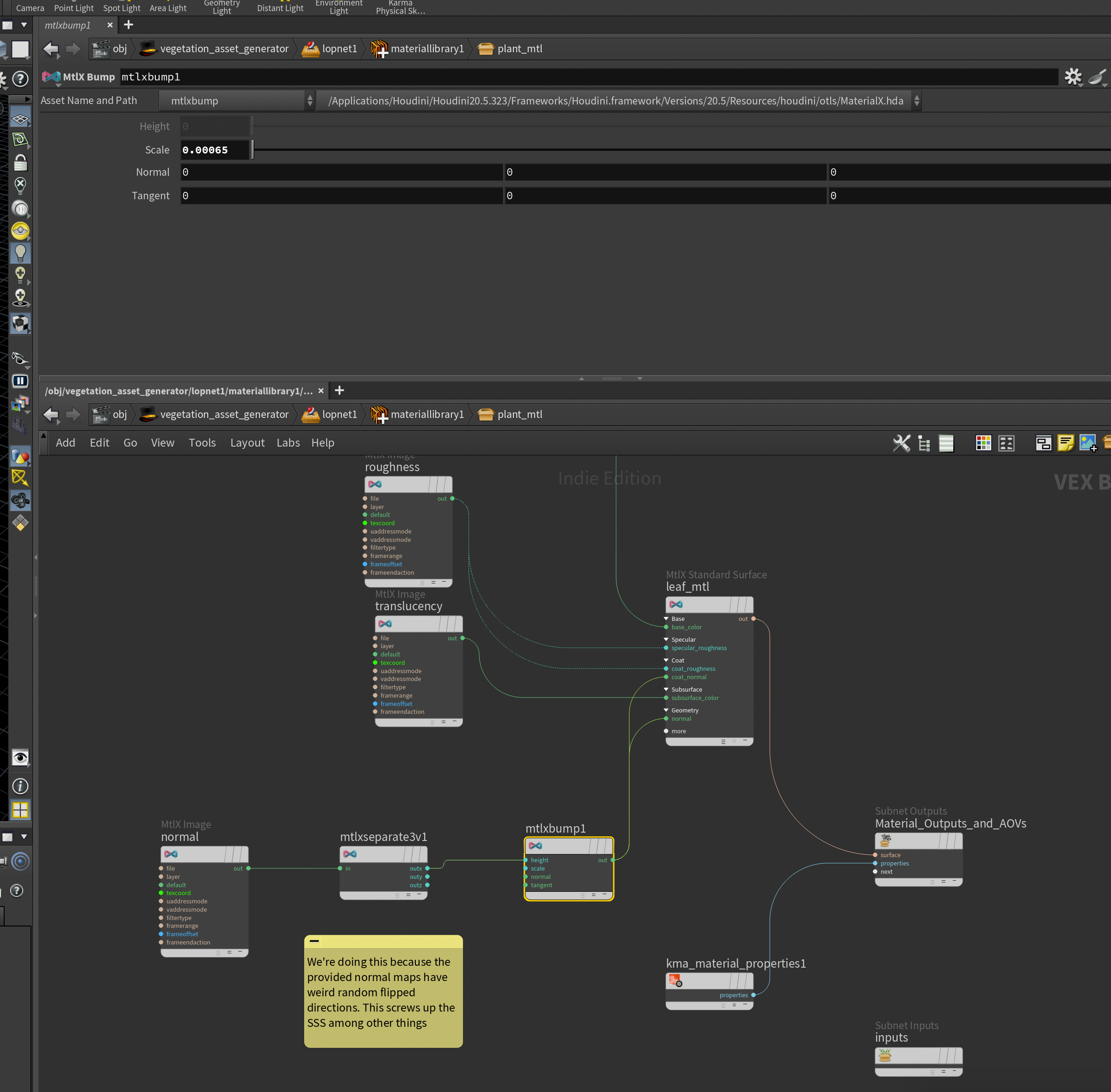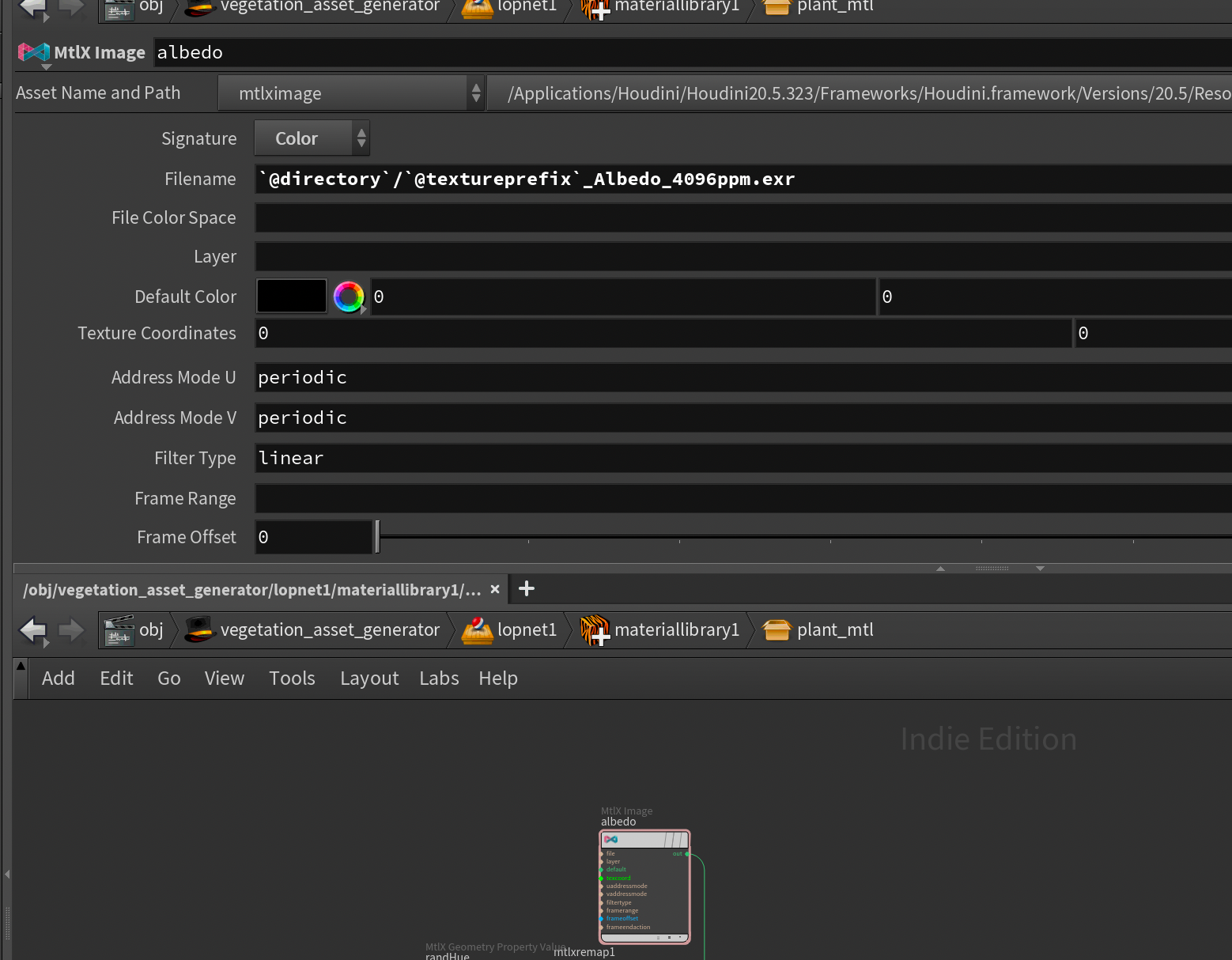 The goal here is to set up a generic vegetation shader, switching textures depending on the current TOPs work item.