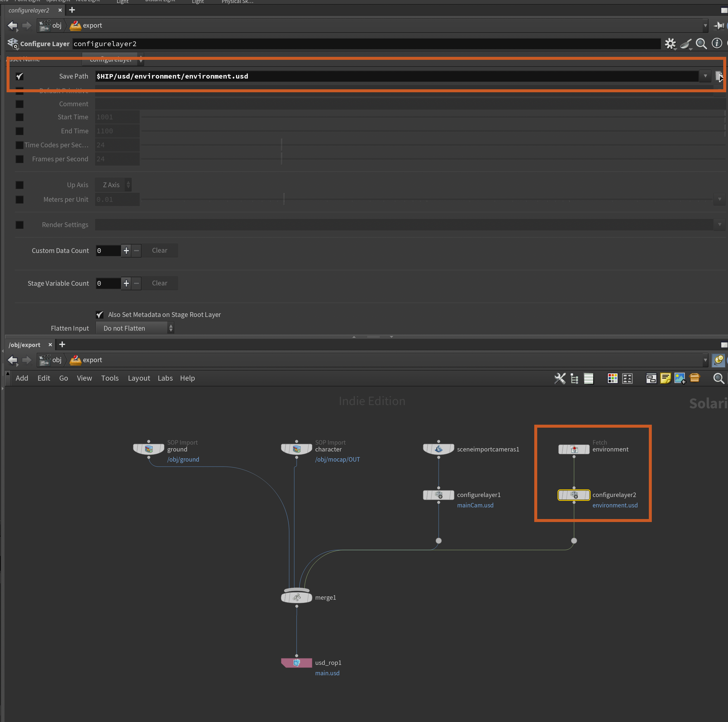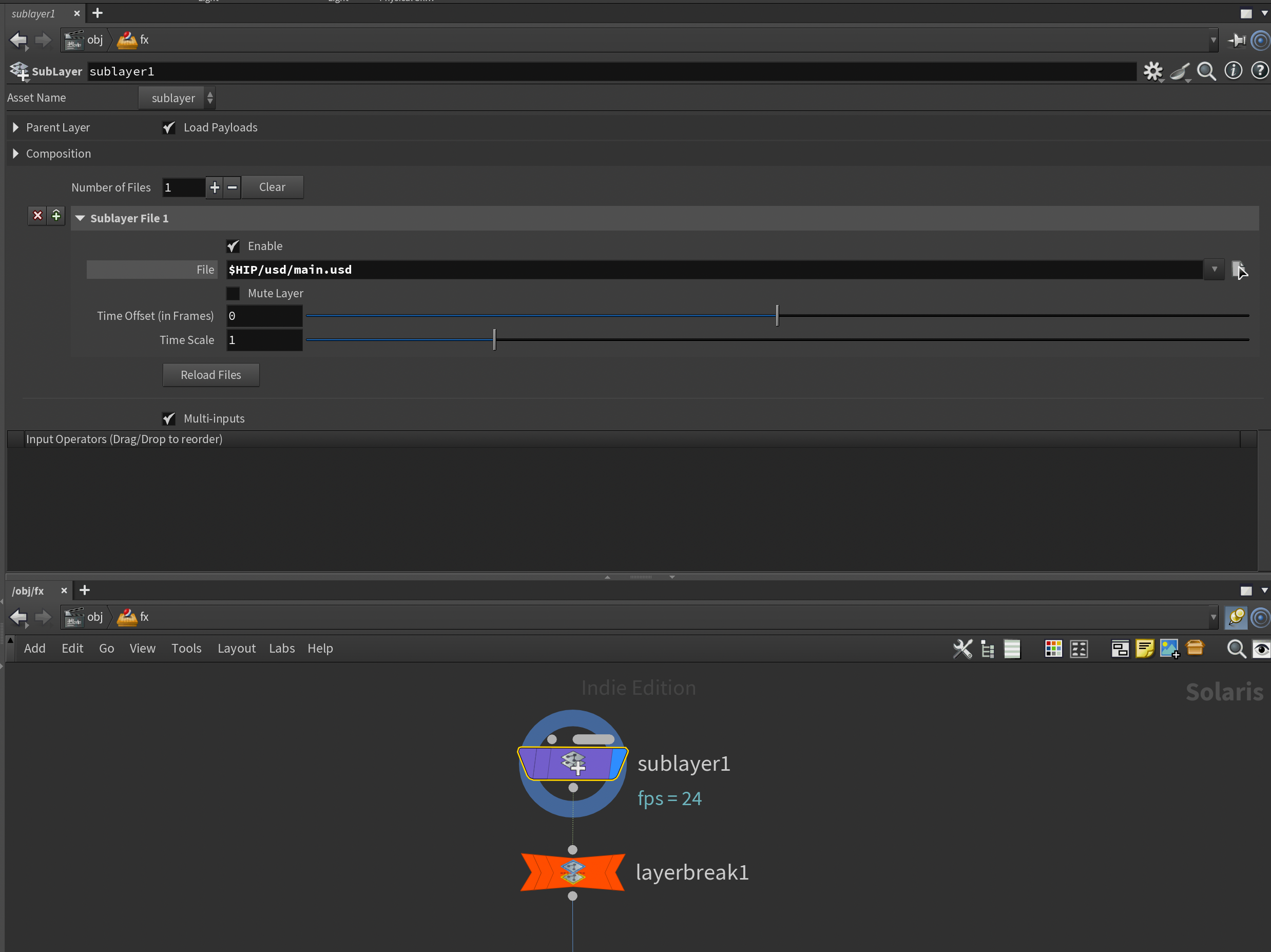 After that, we add another Layer Break to ensure the data from the main.usd doesn't get exported together with our FX layer. We want to layer only our changes on top of the existing files to keep things efficient and clean.