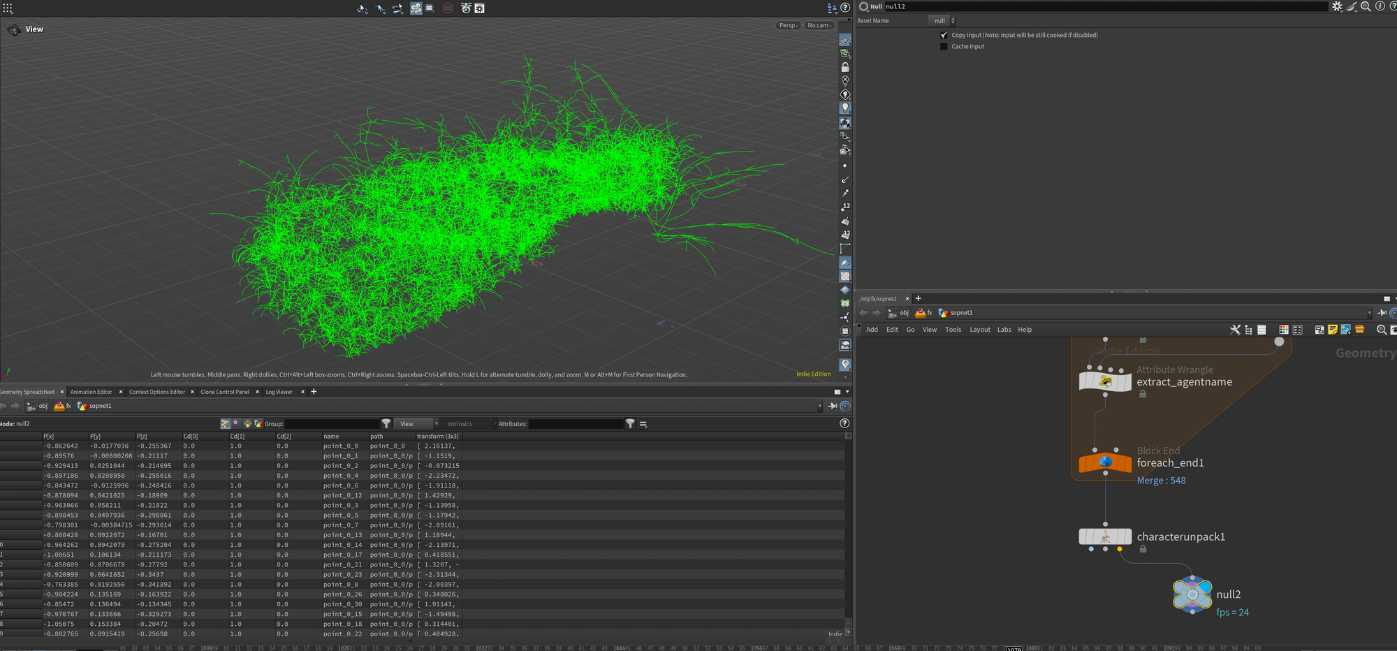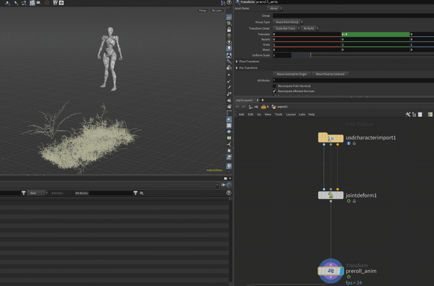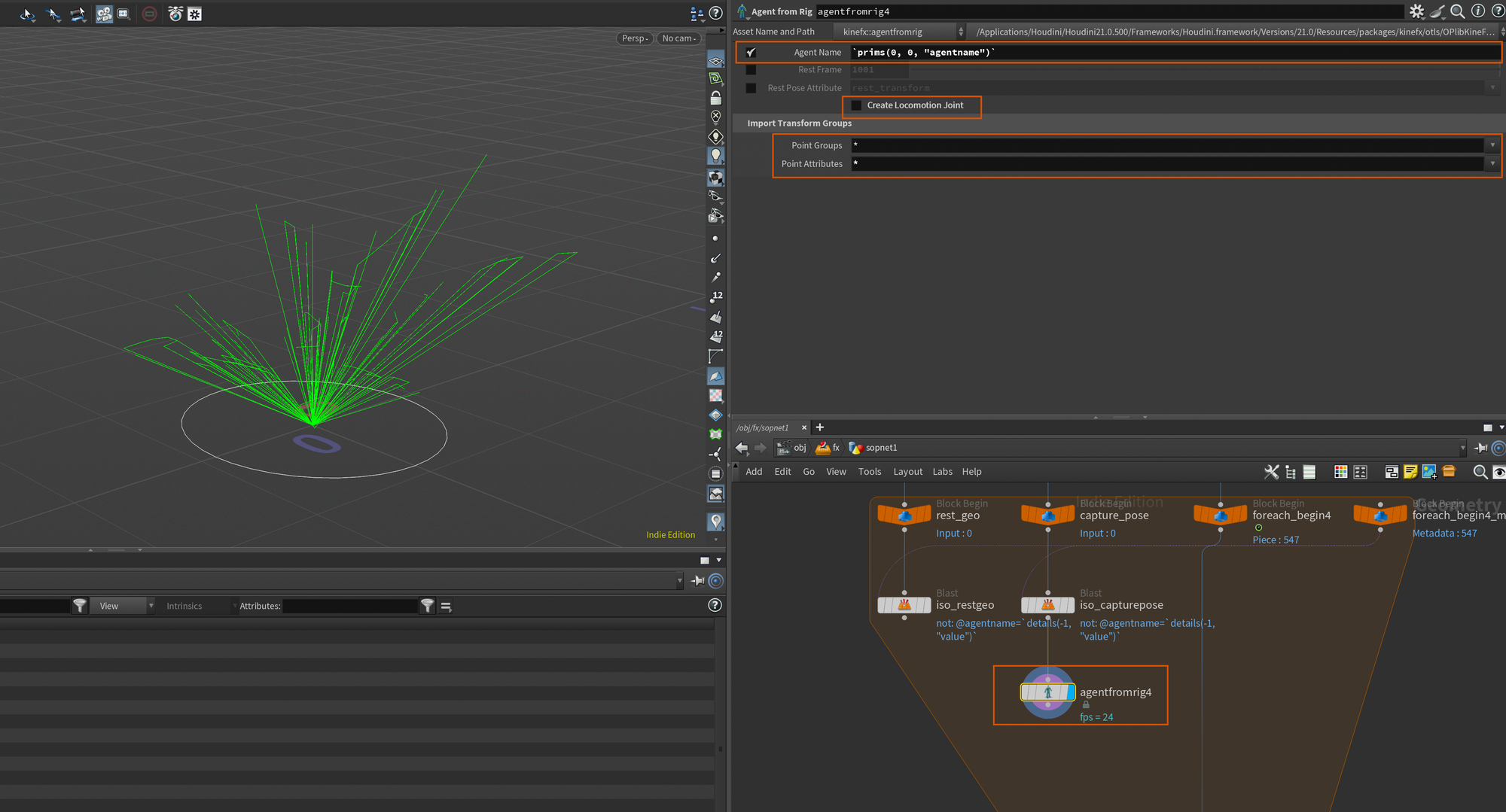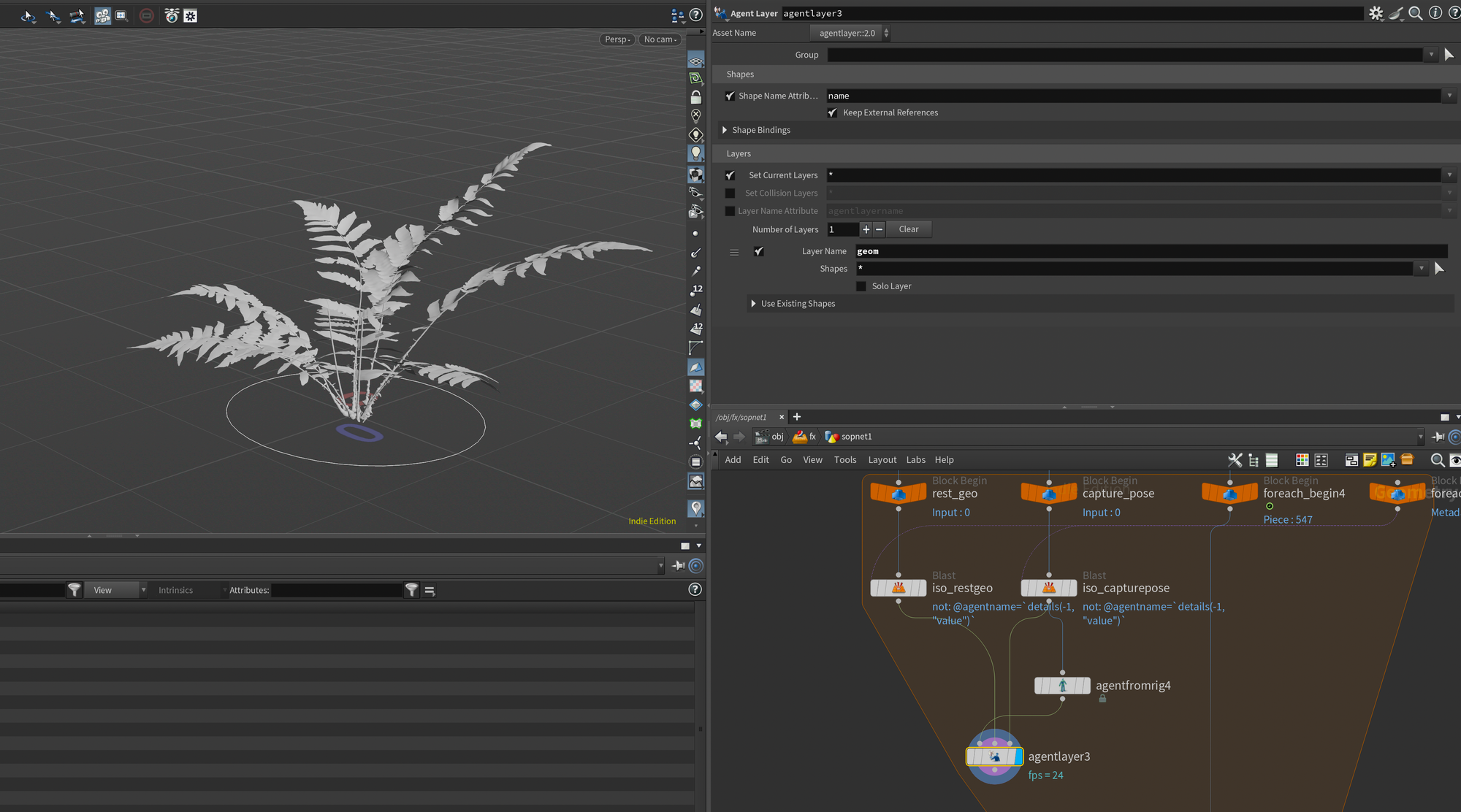 With our simulation cached we are ready to start attaching the animated skeleton to our vegetation Agents and transfer that animation back into LOPs.