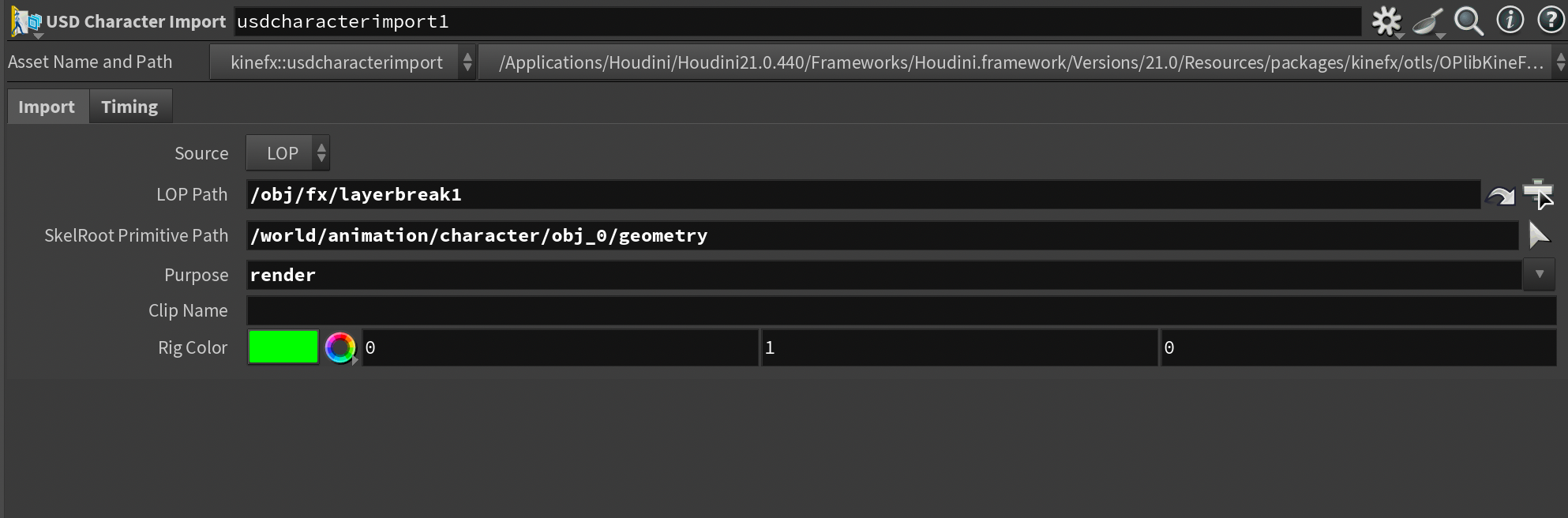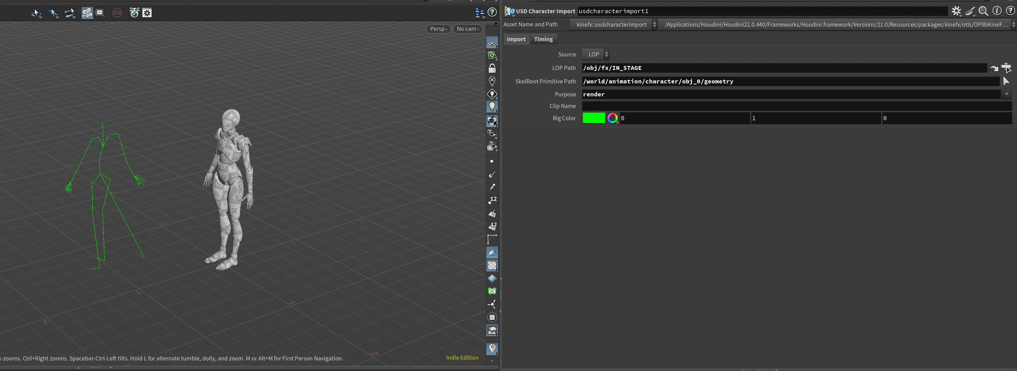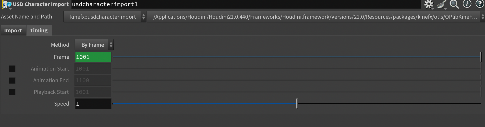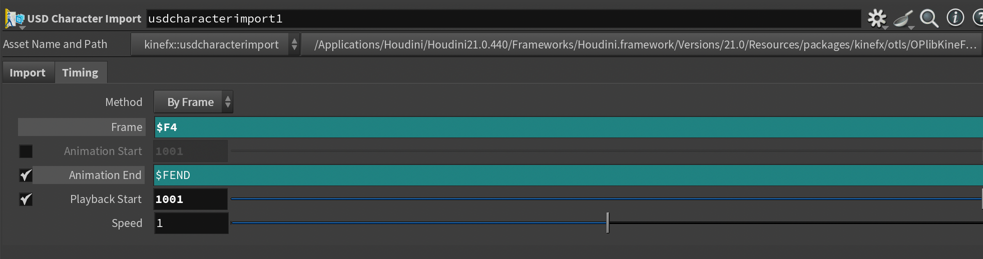USD Character Import for mocap character.I also adjust the Timing tab slightly to make sure we get the correct frame range.