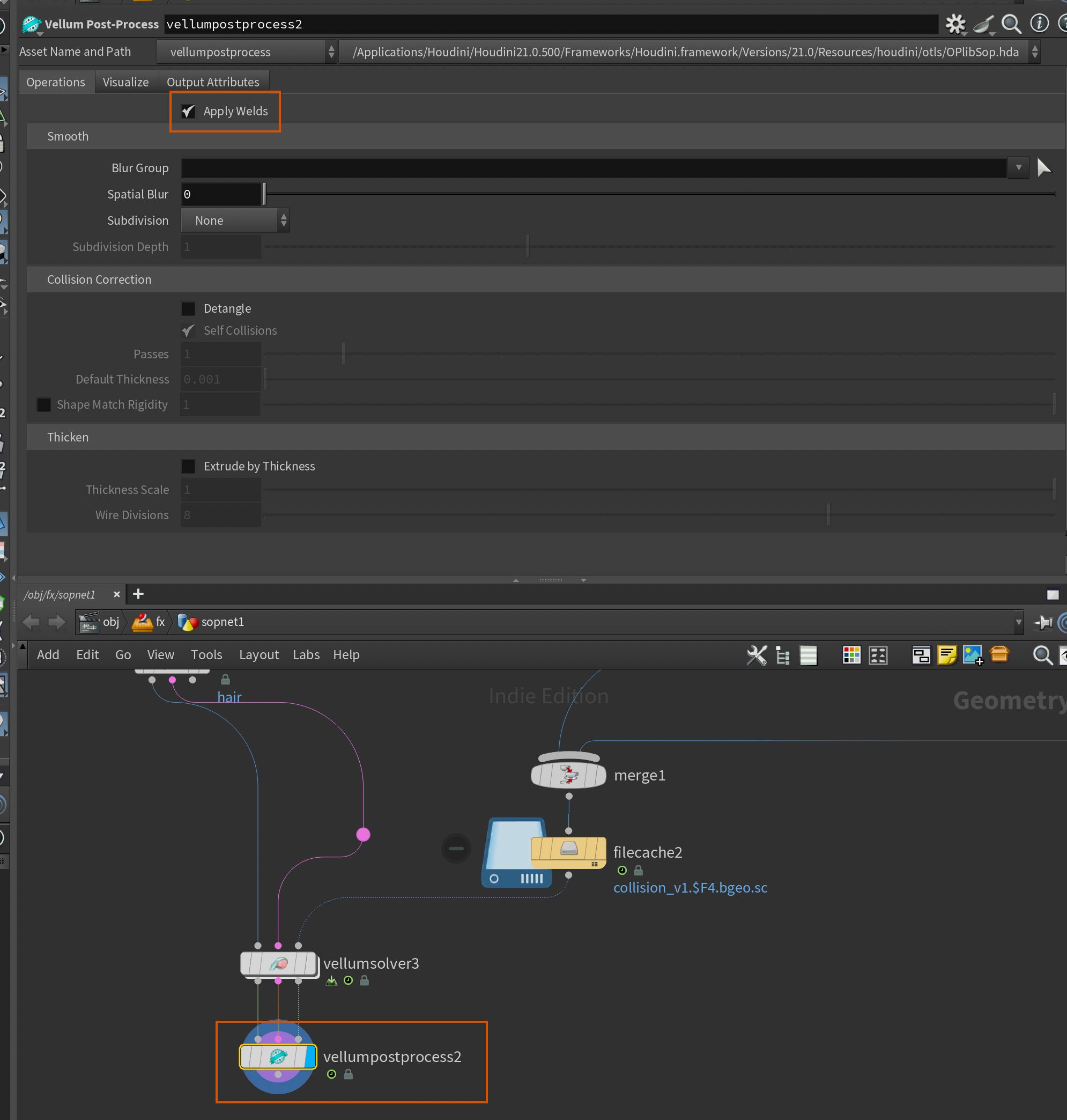You can also do other fancy operations in the Vellum Post-Process, but in our case we'll stick to just doing the welding.
