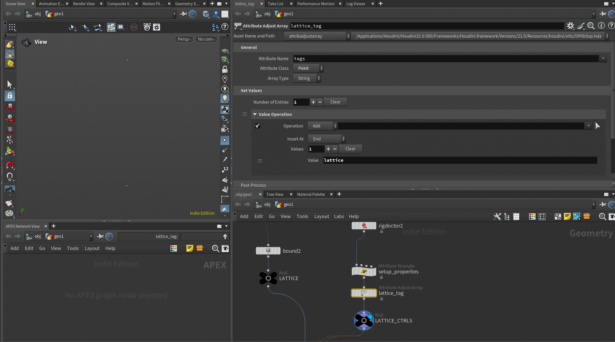 Finally I added an Attribute Adjust Array node to add a tag to our lattice controls. I briefly covered tags in my earlier APEX post, but essentially they are a simple bookmark for us to easily find any of our lattice controls when we start working in APEX.